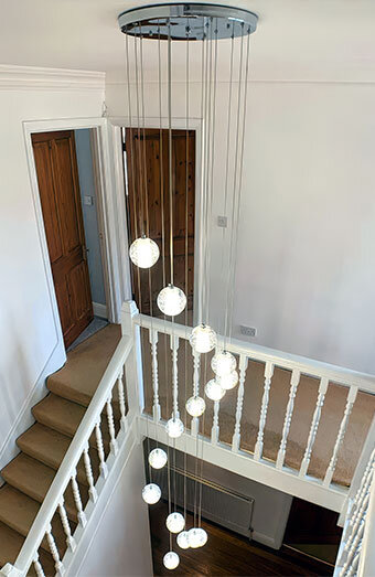 Expert installation of decorative and functional lighting including designer pendants, recessed downlights, statement chandeliers, and architectural lighting for sophisticated homes.